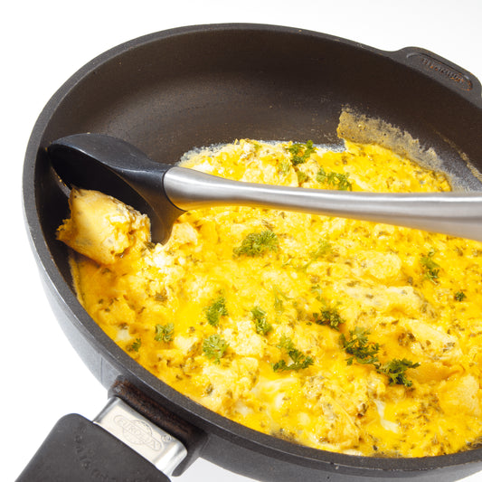 The cooking spoon adjusts wonderfully to the edges of the pot, pan and bowl, leaving...