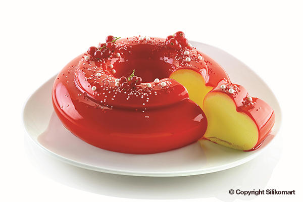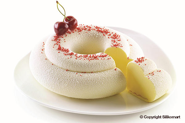 -Do you want to amaze your loved one? Abbraccio is what you need. At first sight its just two harmonious embraced circles, but the real surprise will occur after cutting your creation: each slice will be a sweet heart! The mold is provided with a revolutionary internal border which gives a lightly rounded shape to the base of your preparations.Size: Ø 220 h 65 mm Volume: 1690 ml Oven / microwave proof