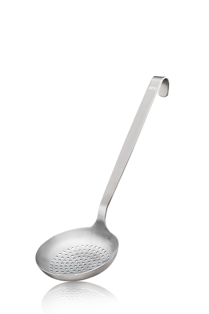 Always part of the kitchen routine: the slotted spoon. Practical, robust, durable and indispensable. Makes skimming surplus fat, starch or other suspended matter easy work.